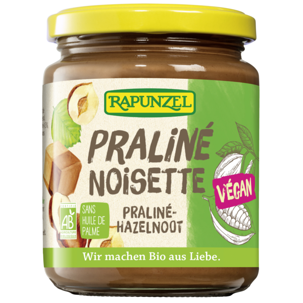 végane, 33% noisettes grillées, avec du sucre de canne Cristallino, élaboré par Rapunzel