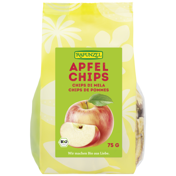 Une collation croustillante et fruitée pour tous les gourmets. Les pommes juteuses sont cueillies à la main à maturité et transformées en chips croustillantes. Les chips prennent leur coloration brune naturelle en raison de l'absence d'acide citrique.