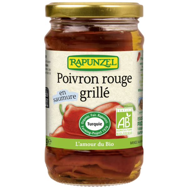 Poivrons rouges «Capia» mûris au soleil provenant du projet Turquie de Rapunzel. Les poivrons rouges récoltés à la main sont grillés sur le feu dans un four spécial, ce qui leur donne leur goût typique de grillade. Les poivrons rouges sont parfumés et fruités et peuvent être utilisés de nombreuses façons.