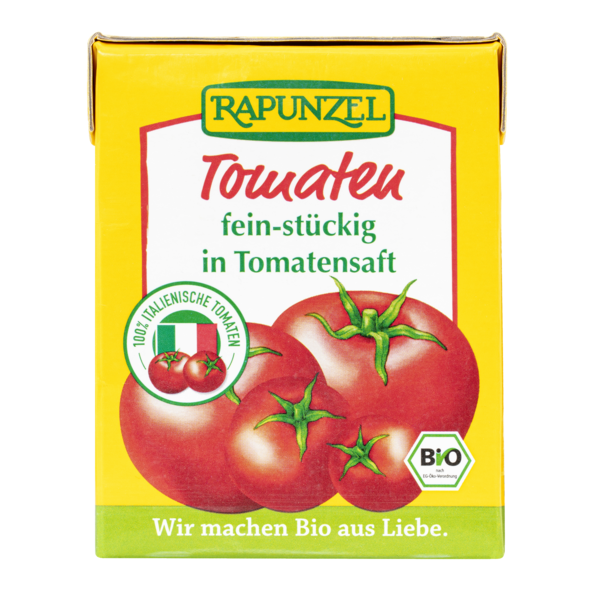 Polpa di Pomodoro - Pratique en Tetra Pak. Les tomates italiennes mûries au soleil sont rapidement transformées, pelées, coupées en dés et conditionnées avec le jus de tomates. La transformation sur place permet de conserver la saveur fruitée des tomates. Les tomates proviennent à 100% d'Italie.