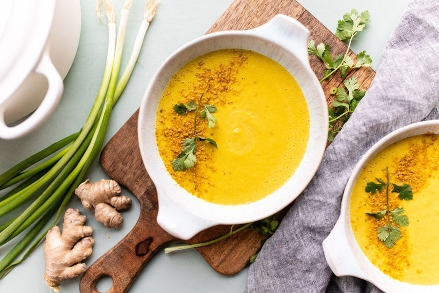 Soupe alcaline céleri-gingembre et curcuma